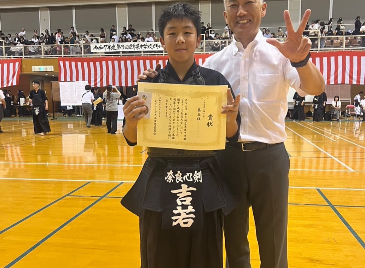 ホーム/記事一覧/広島 中学生ビギナーズ大会広島 中学生ビギナーズ大会2025年8月31日•執筆: sinkennokadaお知らせ大会結果 2025年8月30日(土) 広島 中学生ビギナーズ大会 中学生から剣道を始めた選手だけの大会 開会宣言 みなさん剣道をはじめてくれてありがとう‼️ 素晴らしい取り組みに感銘を受けました 【個人戦】 中2女子 切畑屋ユウ 準優勝🥈 中2男子 吉若ハルト 3位🥉 【団体戦】 男子4回戦敗退 BEST8 吉若、藤村、高木、中束 持てるチカラは全部出し切りました 大会関係者の皆様 素晴らしい機会をありがとうございました クリックで拡大1 / 2タグ:#剣道#剣道大会#奈良心剣道場記事一覧に戻る