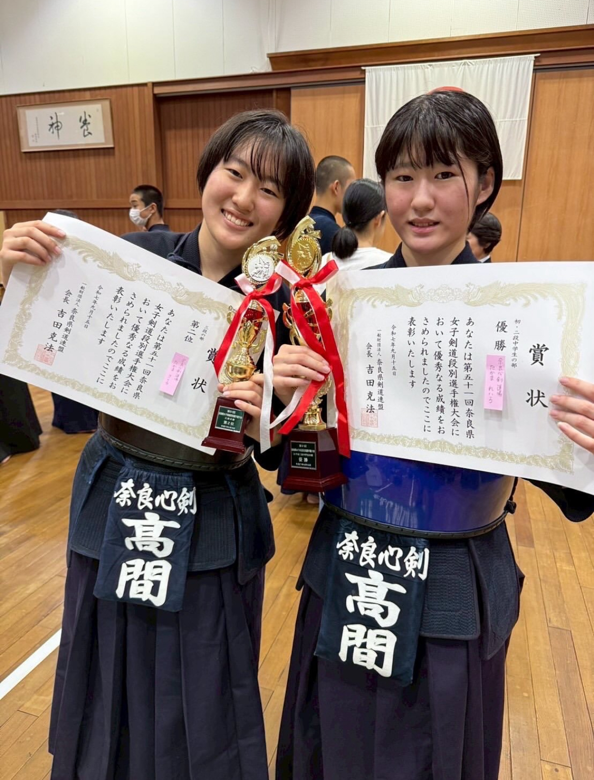 ホーム/記事一覧/奈良県剣道段別選手大会奈良県剣道段別選手大会2025年9月18日•執筆: sinkennokadaお知らせ大会結果 2025年9月15日(月祝) 奈良県剣道段別選手大会 初二段の部(中学生女子) 優勝🏆 髙間レイラ 3位🥉 切畑屋ユウ 女子三段の部 準優勝🥈 髙間サクラ🌸 みんなよく頑張り結果を残してくれました ありがとう😊 クリックで拡大1 / 3タグ:#優勝#剣道大会#奈良心剣道場記事一覧に戻る